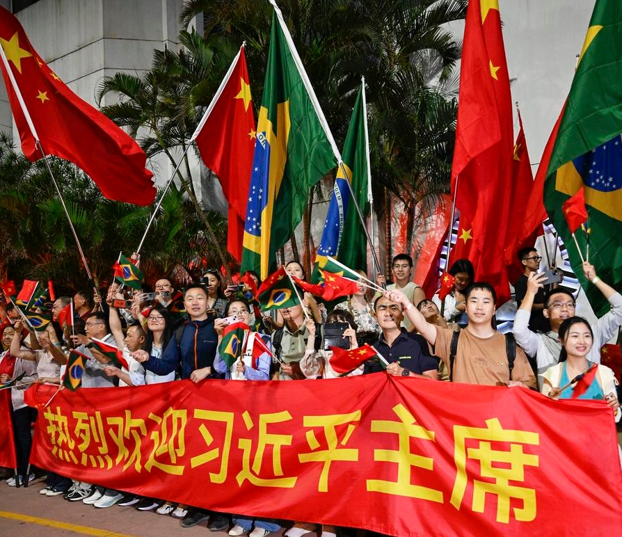People welcome Chinese President Xi Jinping in Rio de Janeiro, Brazil, Nov. 17, 2024. (Xinhua/Li Yan)